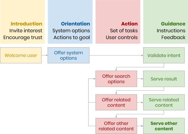 As discussed in the previous installment of this series concerning conversational design, discoverability of your content is a key component of ensuring that an organization's content strategy succeeds. After all, we can work many hours on guaranteeing the legibility of our content while simultaneously, and unintentionally, inhibiting the discoverability of our content. In the previous post, to address discoverability in a systematic way, we discussed the need for flows that are guided and unidirectional.