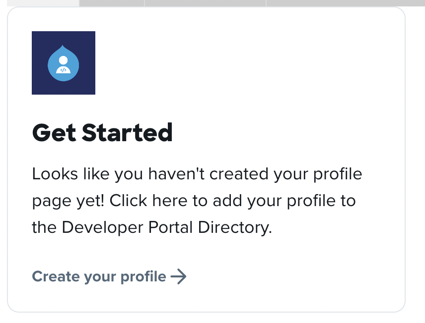 Step Two: See the Get Started Block under your profile. Click on the Create your profile link to get you to your profile form.